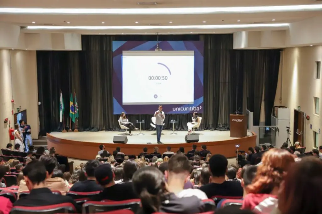 Eduardo Pimentel (PSD) expôs suas principais propostas do Plano de Governo dele para a Prefeitura de Curitiba. O candidato participou de uma sabatina com uma plateia de 300 estudantes, na noite dessa quarta-feira (4), promovida pela UniCuritiba – Centro Universitário Curitiba.